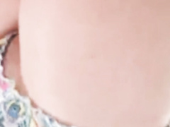 Foxy babe with a cute behind wears a flimsy bikini bottom