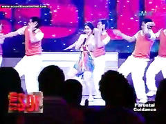 Raven haired Romanian girl makes her large boobs bounce on TV