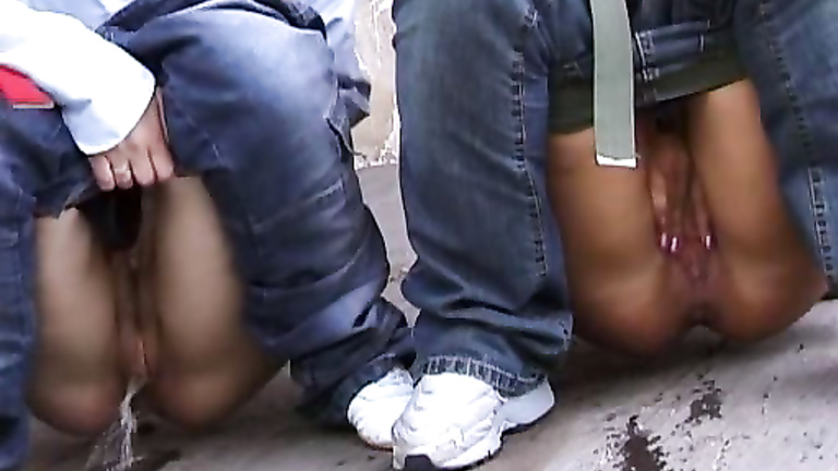 The girl on the left is great she's really enjoying that pee letting it flow while her friend struggles to let out a drop