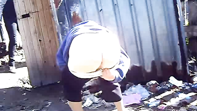 Public urinating in the dirt and garbage