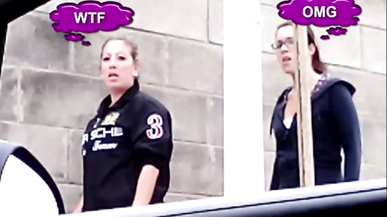Girl sucks cock in a car in public